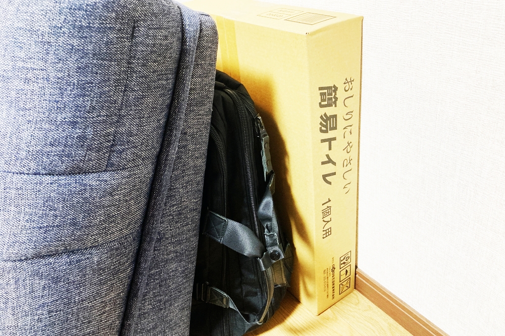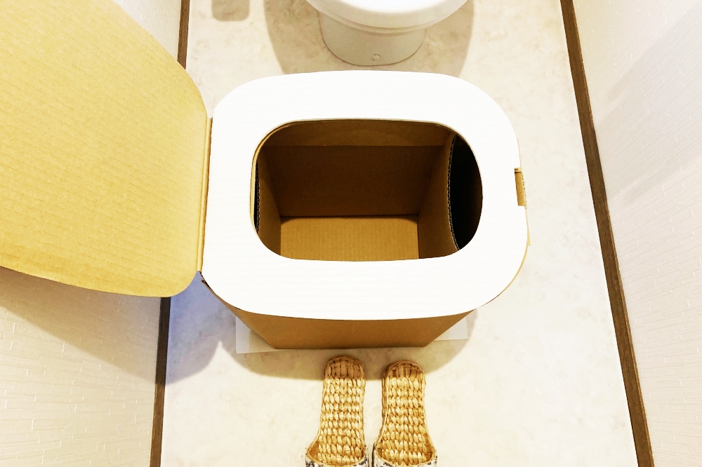 おしりにやさしい簡易トイレは段ボール箱に入っています。